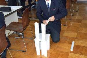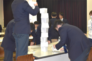【PDCA を活用したペーパー タワー制作】では、PDCA のフレームワークを軸に、限定された条件下(時間・材料・加工方法)に加え、コスト面も意識して制作に取り組んでいただきました。ターン制で実施する中で、より良い製品を制作するために各チームがアイデアや改善案等、様々な意見を出し合い、PDCA サイクルを回しながら積極的に取り組んでいただきました。