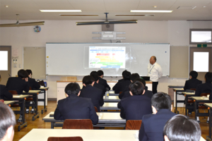 本授業では、学校生活で「ものづくり」を勉強している真岡工業高校の生徒さんへ向け、改めて「ものづくり」の大切さと面白さを伝える講話を実施。